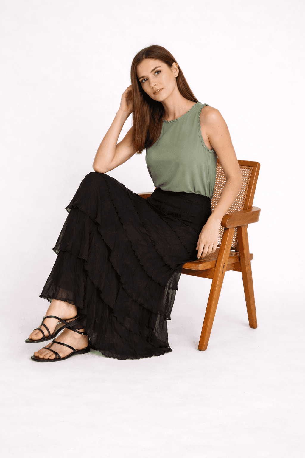 Discover our range of silk tops, pants and skirts, designed and made in Italy, delivered across Australia. Each piece is crafted in an elegant free size, designed to flow beautifully on every silhouette.